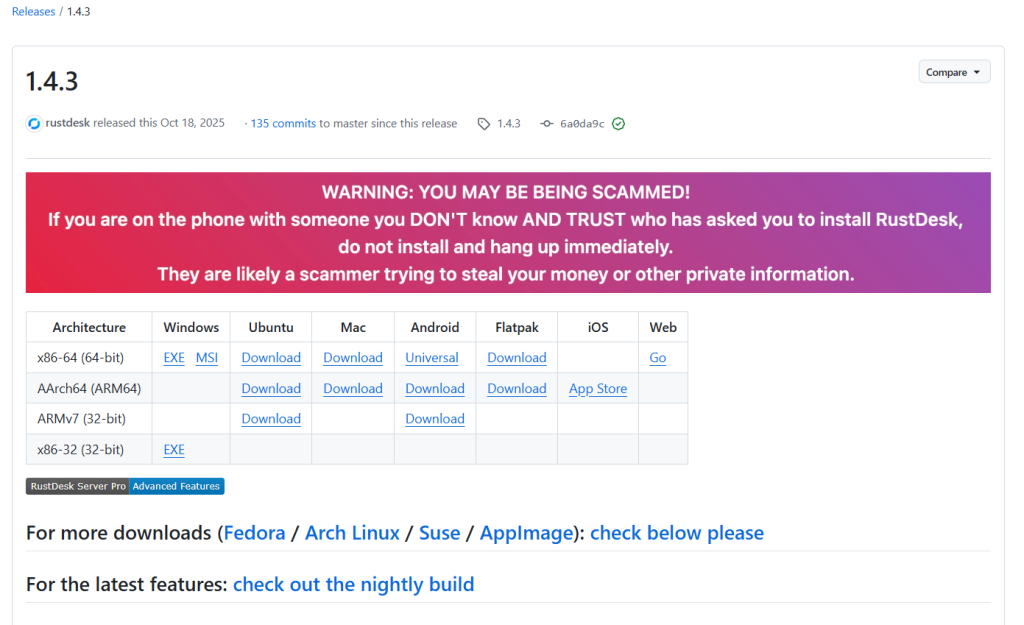 客户端下载地址:https://github.com/rustdesk/rustdesk/releases/tag/1.4.3